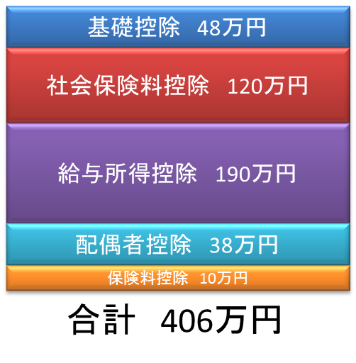 この場合、800万円ー406万円=394万円が「税金の対象」になります。