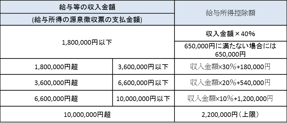 ・給与所得控除(以下の表で計算)