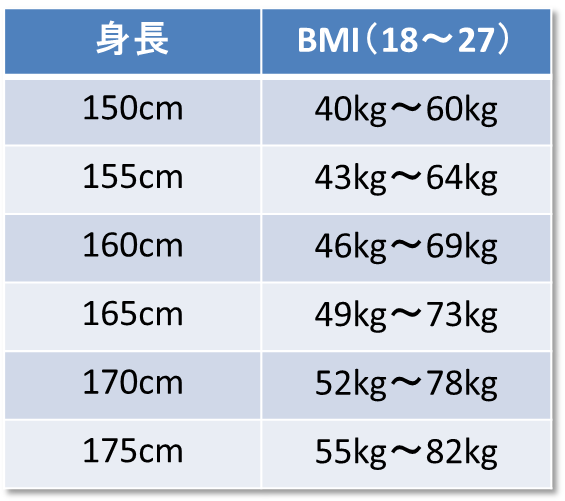 数値が小さければ「痩せている」、数値が大きければ「太っている」ということですが、保険加入の際には、一般的にBMIが17から27の間が良いとされています。