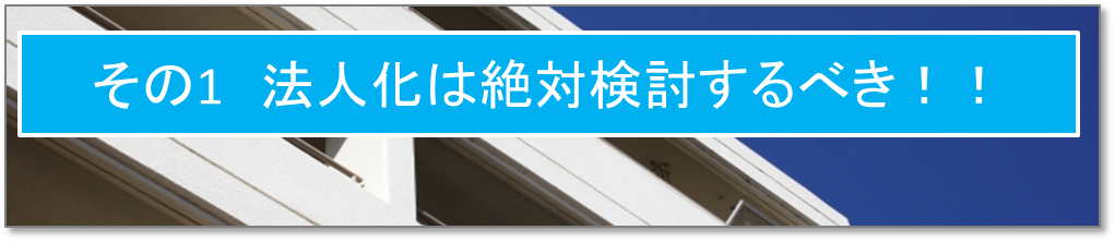 不動産オーナーは個人事業の方が多いですが、法人化は絶対検討するべきです。