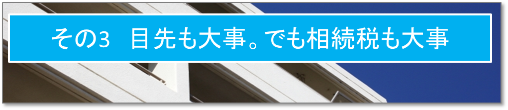 その3 目先の節税だけでなく、相続税対策も重要。税制も変わりやすいので、常に長い目で対策を!!