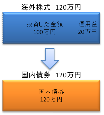 しかし、今後の海外株式市場の先行きに自信が持てないため、一時的に安全な国内債券に変更したとします。この場合、