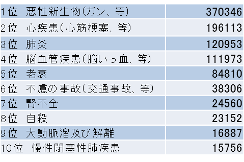 以前、本ブログでまとめたデータ(あなたの大事な人が「突然いなくなる」確率をご存知ですか?)では、死因の約3割がこれらの