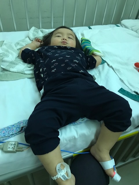 翌朝、上の娘を幼稚園に預け、病院に行ったが、本人はいたって元気で、むしろ元気なのに、点滴に繋がれているせいでベットから降りることも出来ず、拗ねきっている様子。