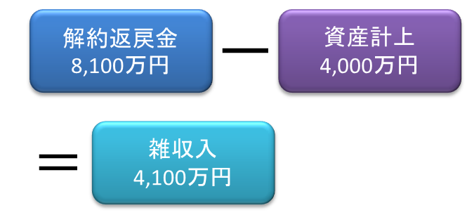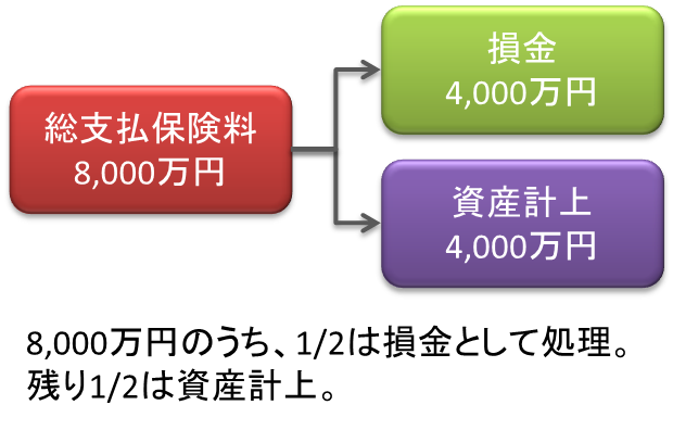 残りの1/2の4,000万円は資産計上(保険積立金)されています。