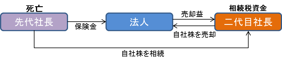 保険金を受け取った法人は、「配当可能利益」が大幅に増えます。そのお金で二代目社長の自社株を買い取ることで、相続税の資金を準備することが出来るわけです。
